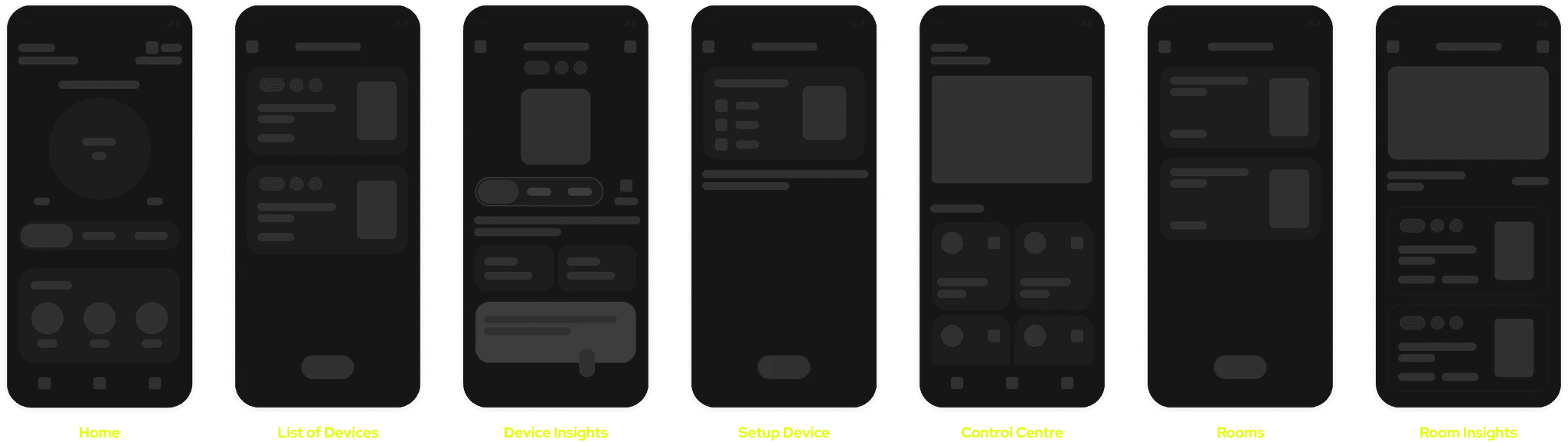 Creating high-fidelity wireframes to improve user experience and interface clarity. The new design focuses on simplifying the navigation and enhancing the control of smart home devices.