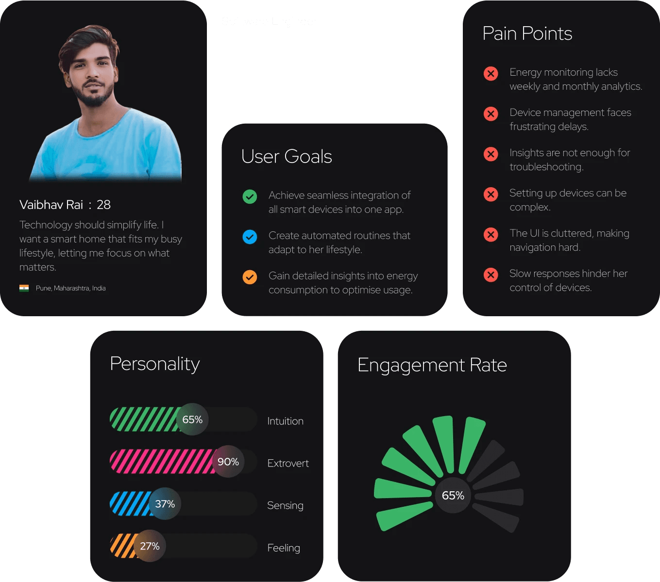 This has helped me pinpoint some major pain points, like the lack of real-time energy monitoring, complicated device setups, slow response times, and a cluttered interface.